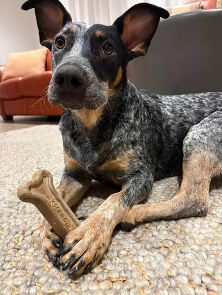 Kelpy Bone uses seaweed based materials from partners at Notpla, offering a safe alternative to conventional plastic chew toys. The brand is committed to reinventing everyday products to be more planet friendly, safe and healthy, helping ensure future generations both two legged and four legged are not overwhelmed by plastic. Because dogs deserve toys that are not made from harmful, planet wrecking plastics.