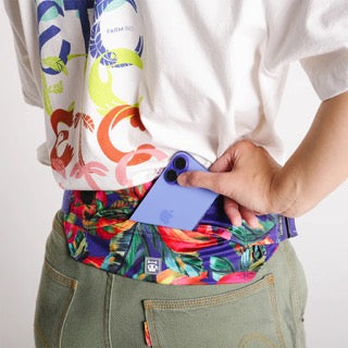 The Samba Running Belt is part of our exclusive limited edition collection with FARM Rio. This running belt was designed to make running with your dog more comfortable and smooth. This hands-free running belt has a shock absorbing leash strap that attaches to your favorite leash and helps absorb the impact of the pulling when your dog runs. It also has reflective detail for visibility at night. The headphone port, water-resistant pocket that can fit even larger phones and the hook for your keys are features that will make your run more enjoyable.